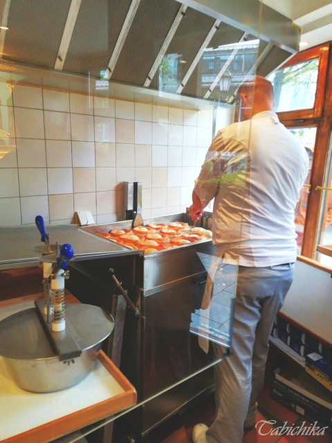 ビクトリエンマルクトの近くにあるカフェで並んででも買いたい、揚げたてドーナツ。